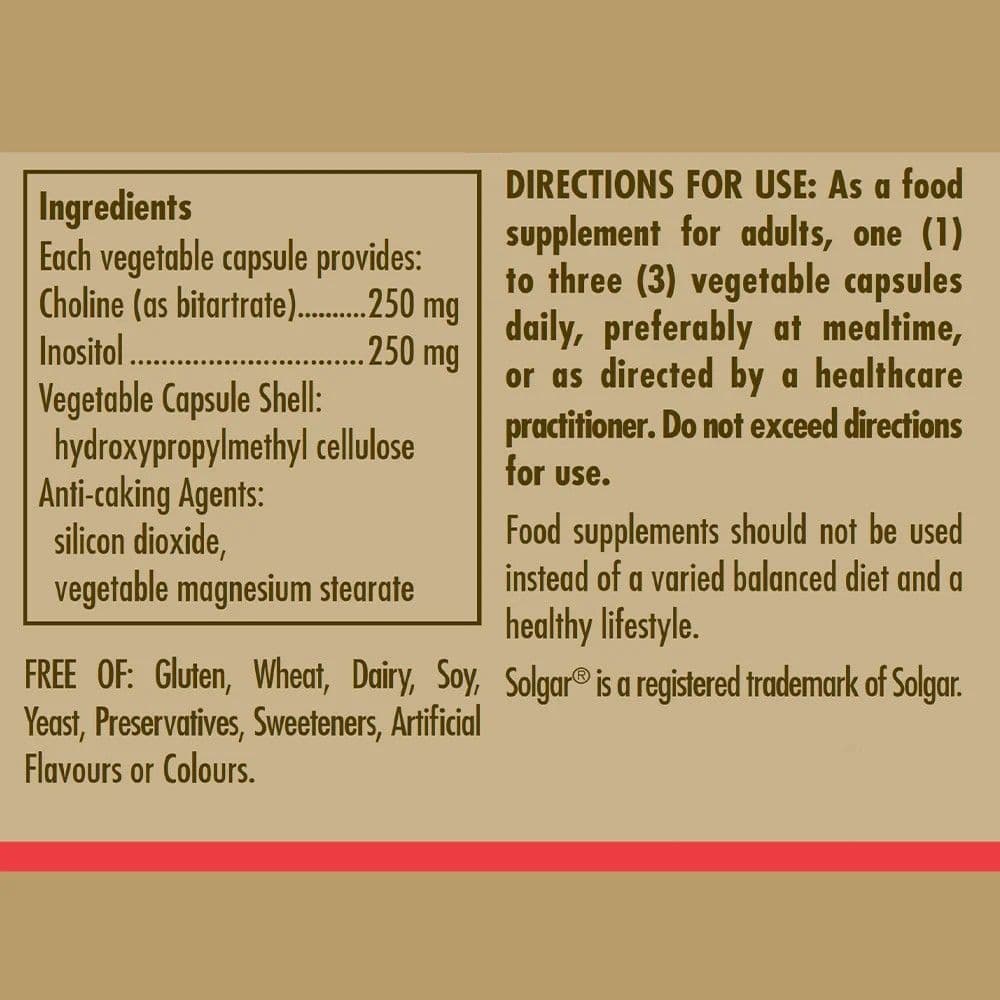 Choline 250mg & Inositol 250mg x 50 Veg Capsules; Solgar