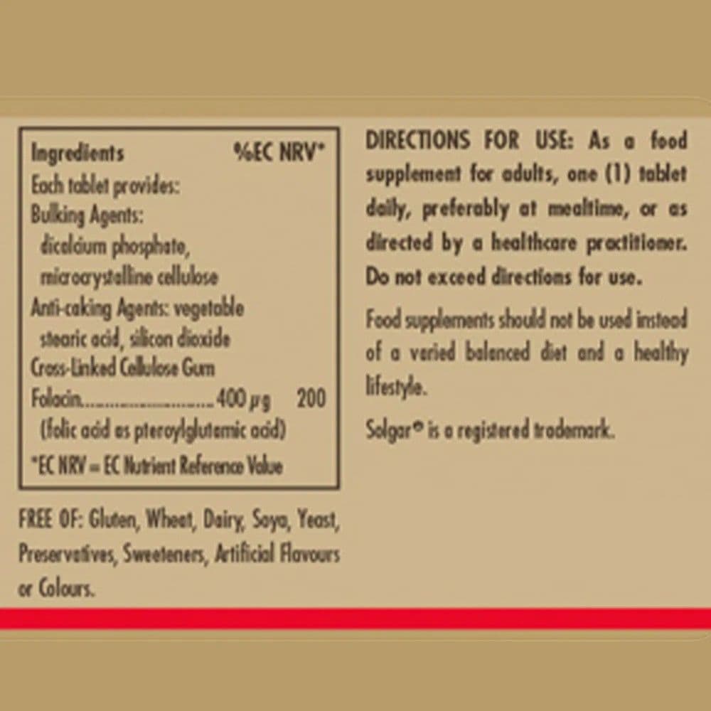 Folacin Folic Acid 400mcg x 100/250 Tablets; Solgar